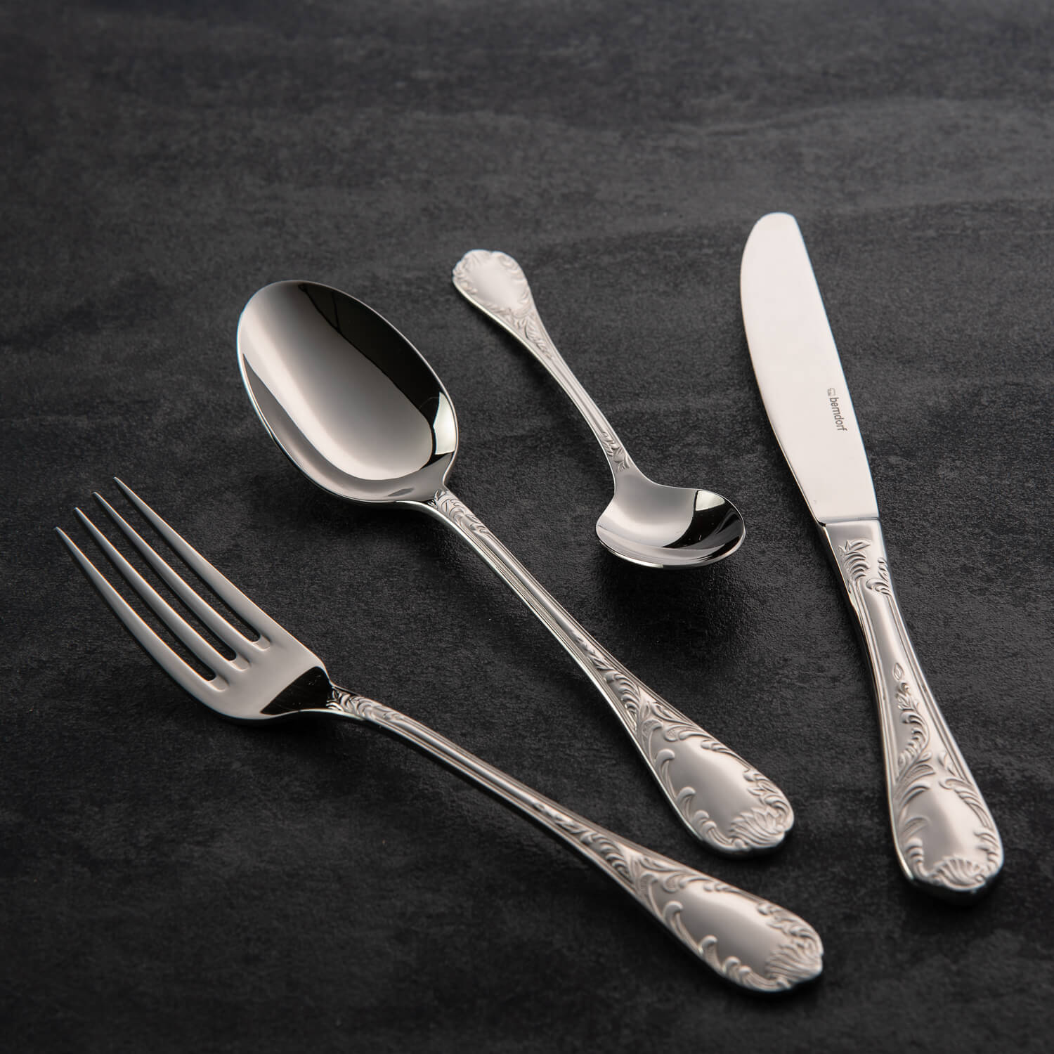 Súprava príborov 70 dielna obsahuje: 12 x lyžica stolová (201mm), 12 x vidlička stolová (200mm), 12 x nôž stolový (229mm), 12 x lyžička na kávu (145mm), 12 x vidlička na múčnik (150mm), 1 x naberačka na polievku (295mm), 1 x lyžička na omáčku (170mm), 1 x lopatka na tortu (233mm), 1 x vidlička predkladacia (245mm), 1 x vidlička na šalát (218mm), 1 x lyžička na cukor (137mm), 1 x lyžička na smotanu (187mm), 2 x predkladacia lyžica (216mm), 1 x vidlička na nárez (147 mm).
