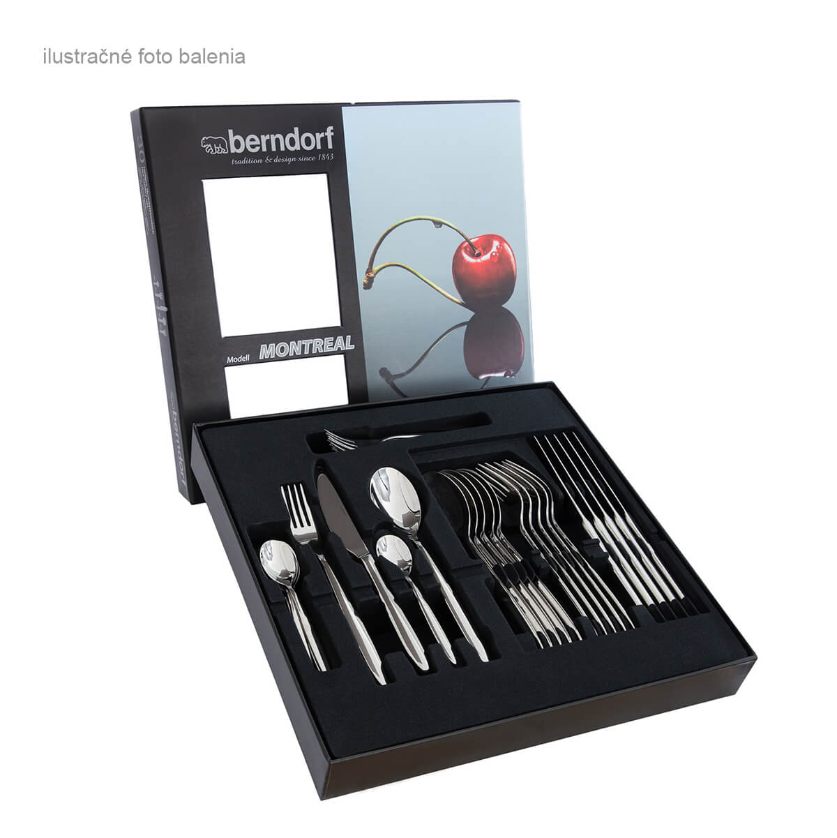 6 x lyžica stolová (194mm), 6 x vidlička stolová (194mm), 6 x nôž stolový (230mm), 6 x lyžička na kávu (140mm), 6 x vidlička na múčnik (156mm).